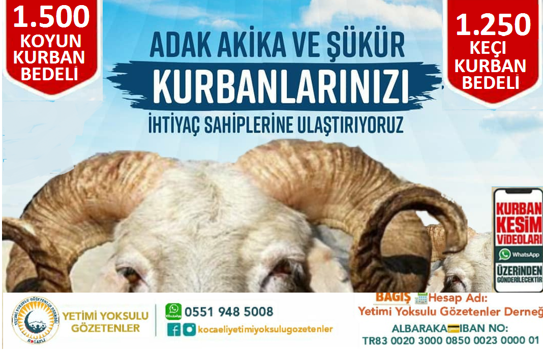 ADAK KURBAN BEDELİ : KOYUN 1500₺ KEÇİ 1250₺![]()