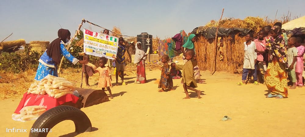 Yetimi Yoksulu Gözetenler Derneği, Boko Haram saldırılarından kaçarak Maiduguri ’ya sığınan Nijeryalı mültecilere yönelik ekmek dağıtımı gerçekleştirdi.
