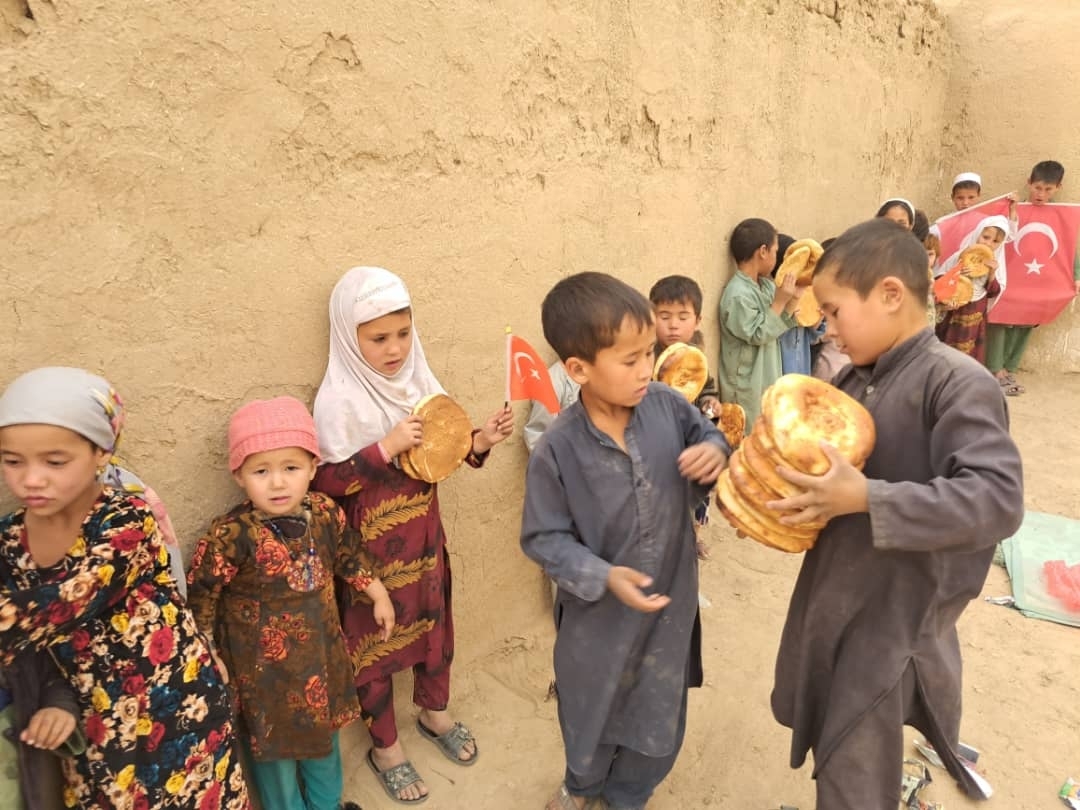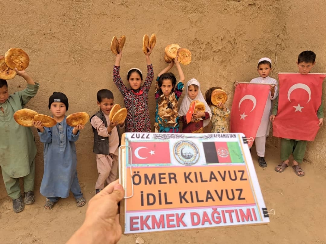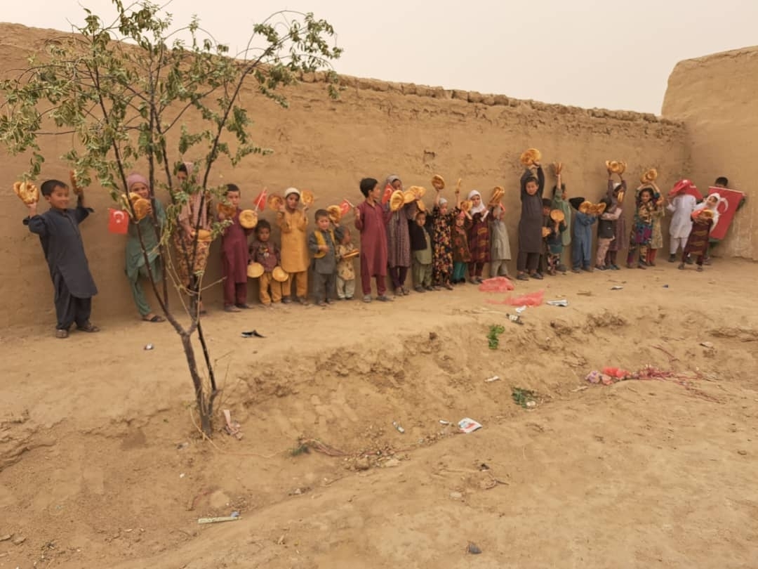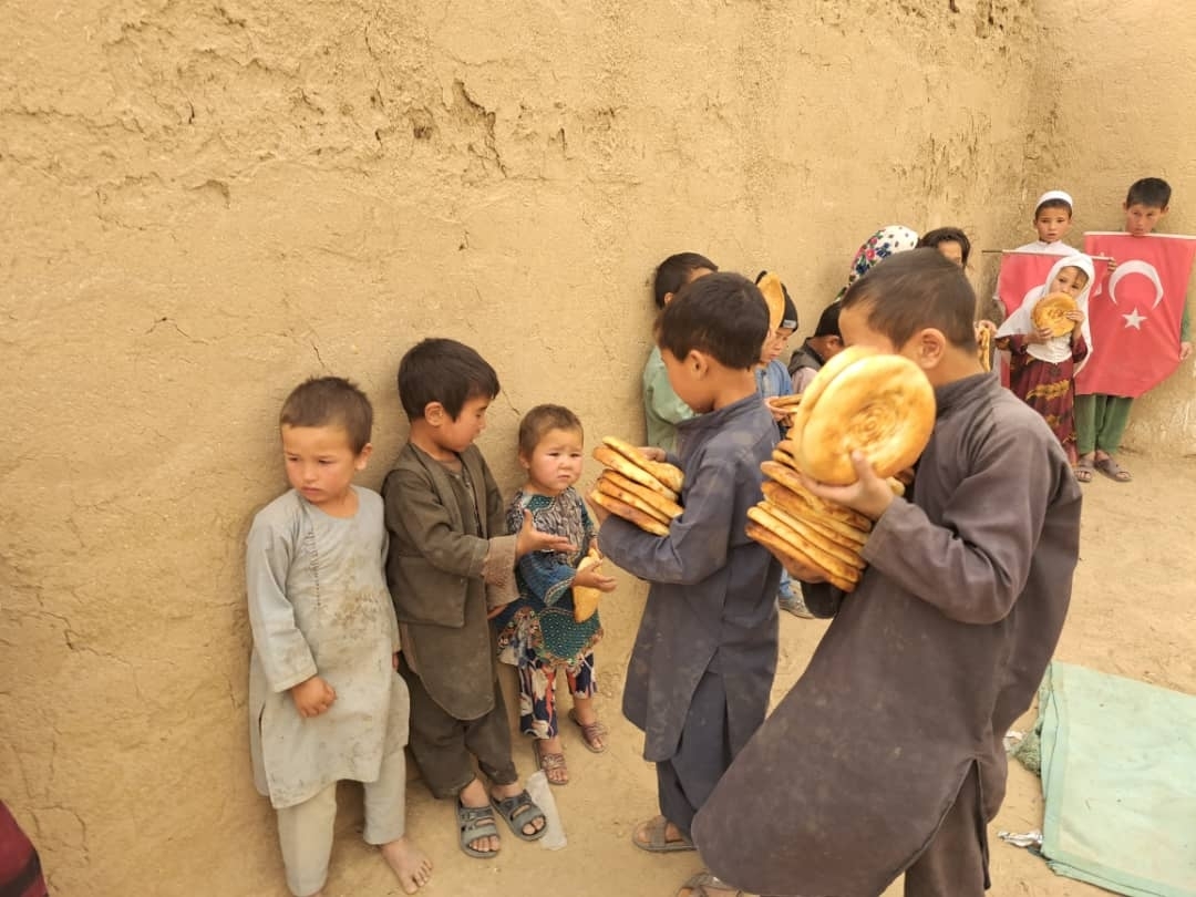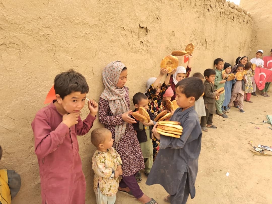Afganistan cevizcan Bölgesi'ndeki yetim yoksul çocuklara ekmek dağıtımında bulunduk