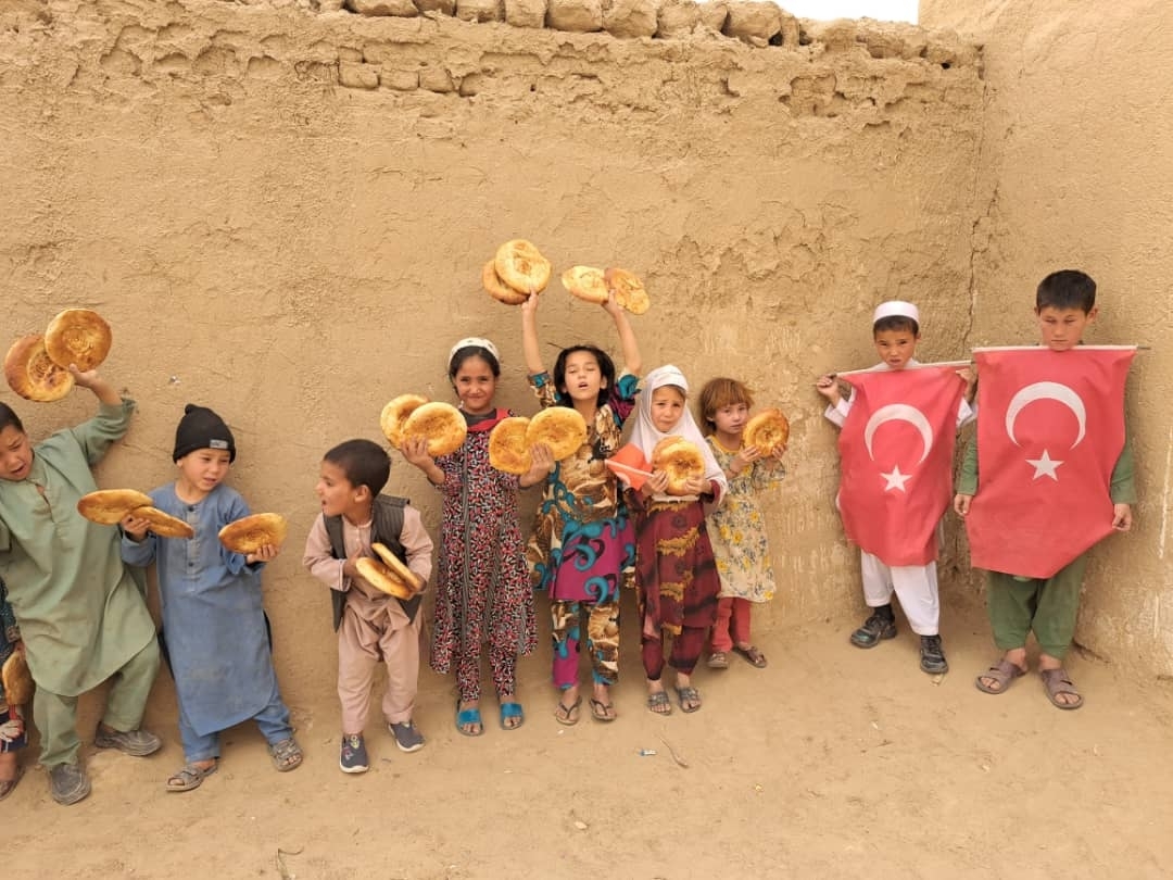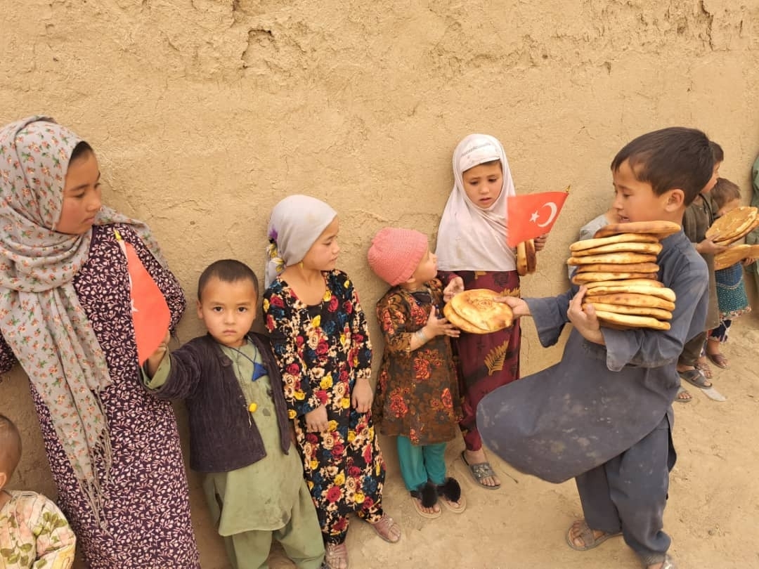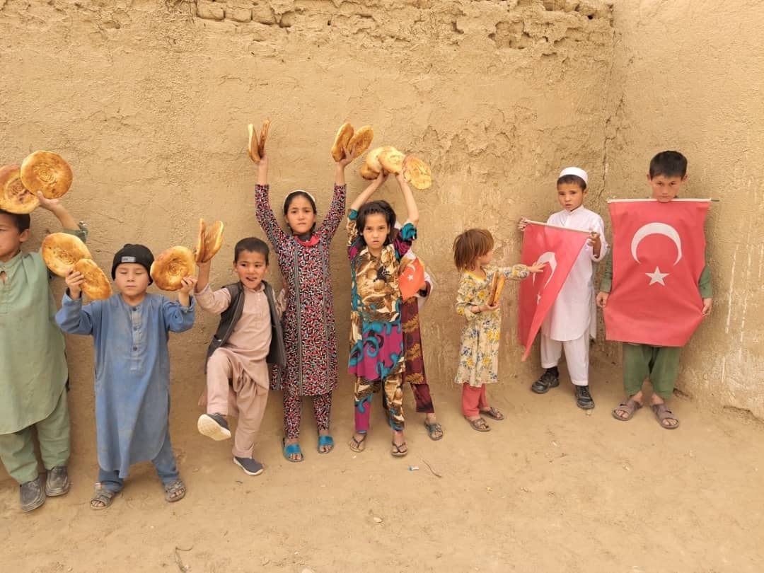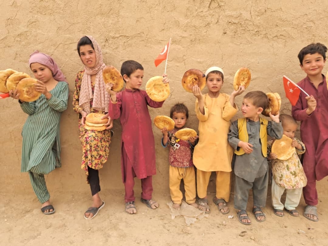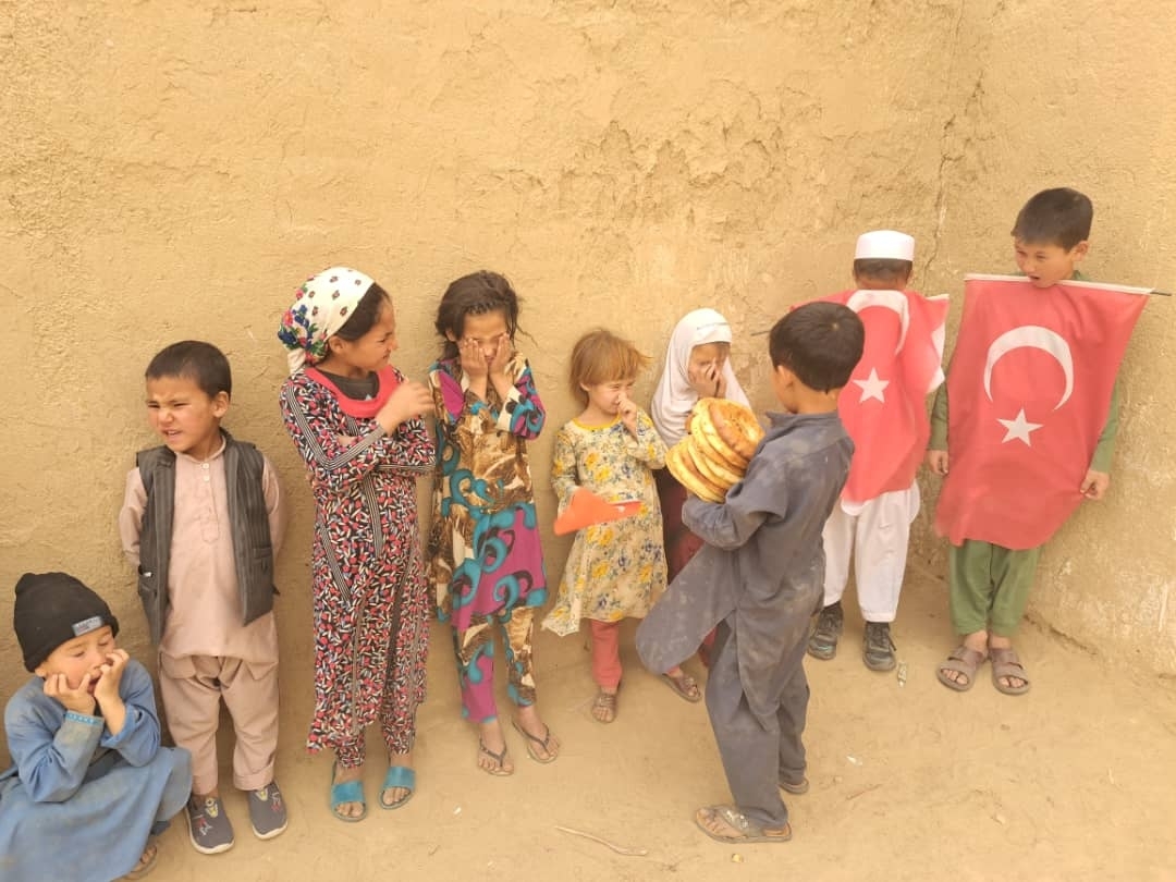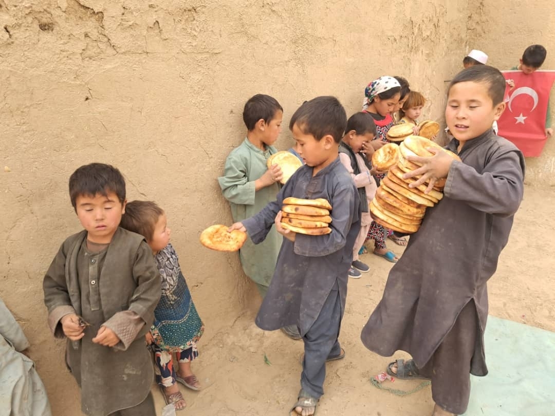 Afganistan cevizcan Bölgesi'ndeki yetim yoksul çocuklara ekmek dağıtımında bulunduk