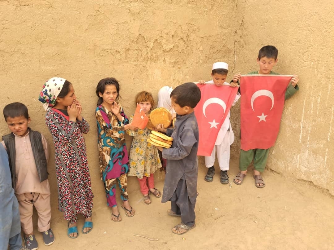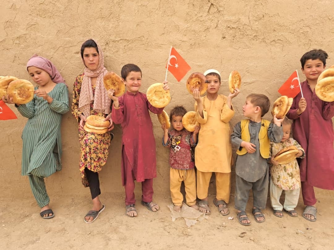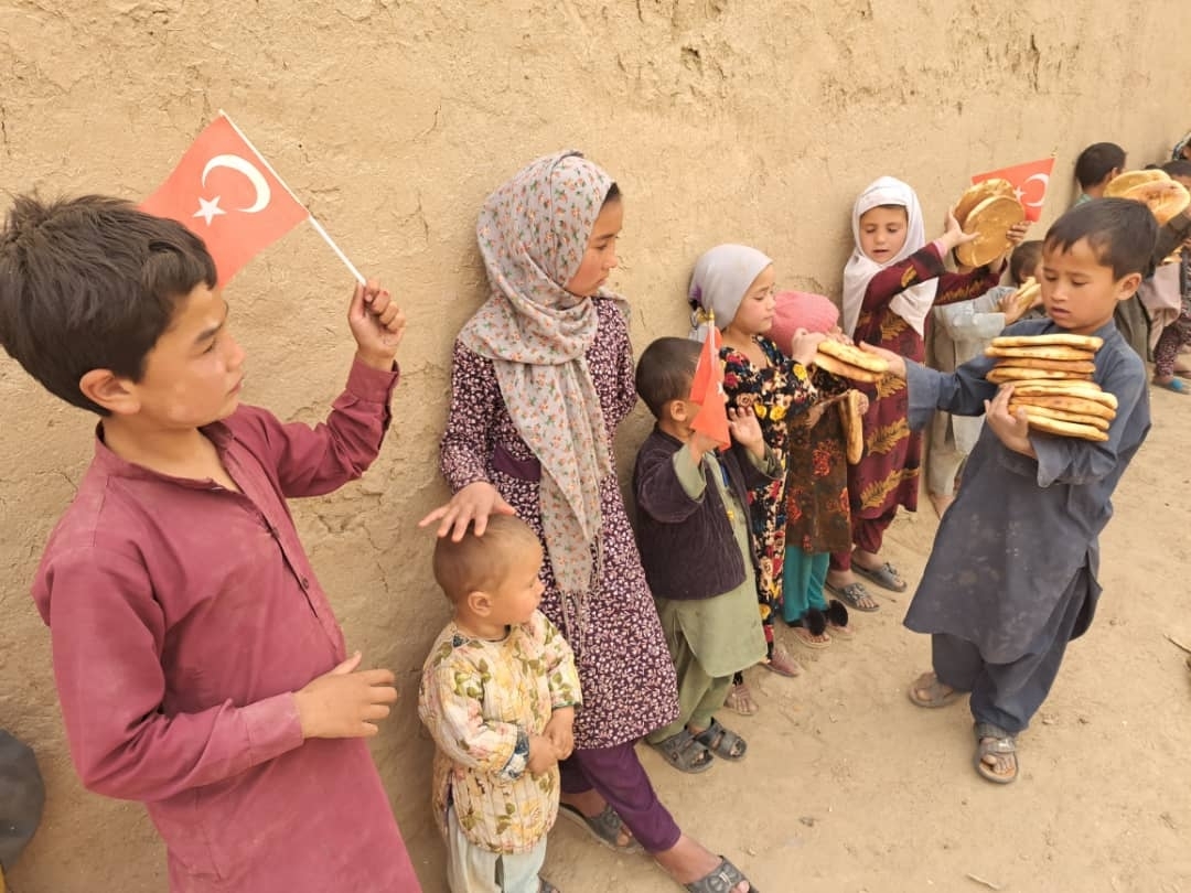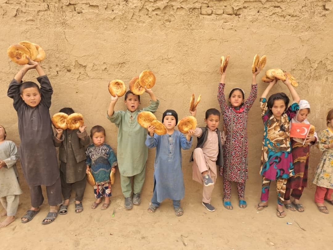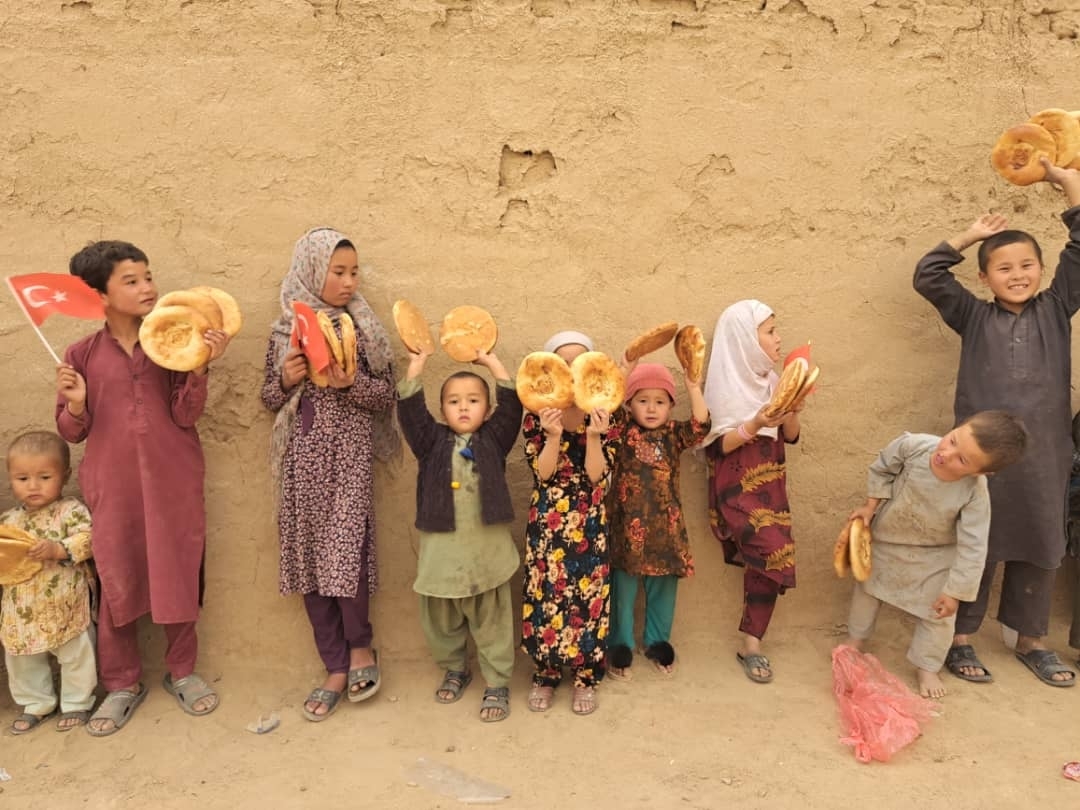 Afganistan cevizcan Bölgesi'ndeki yetim yoksul çocuklara ekmek dağıtımında bulunduk