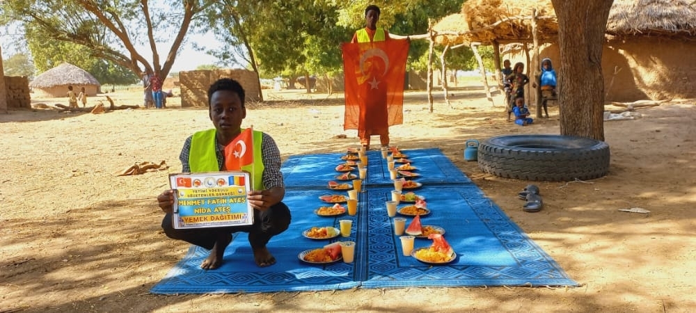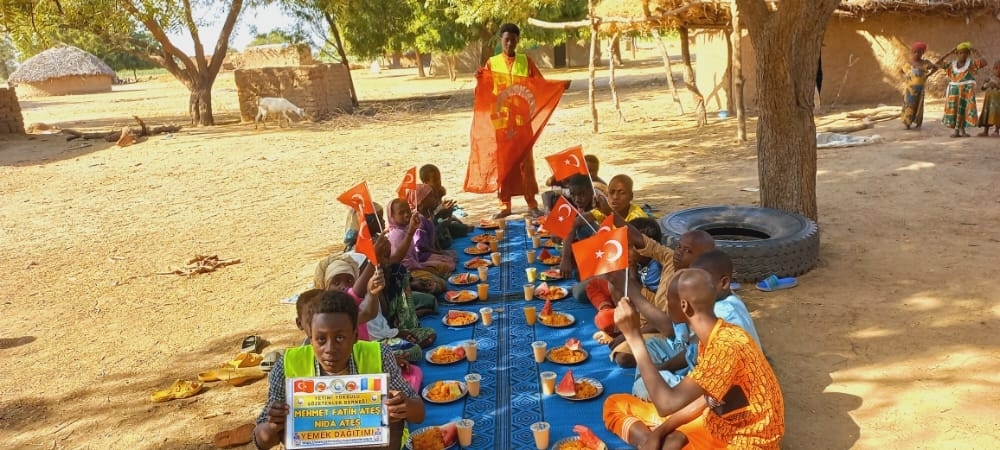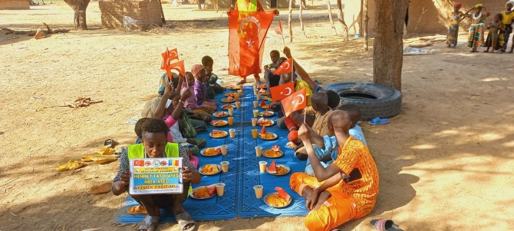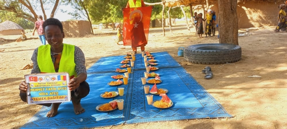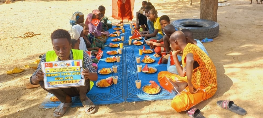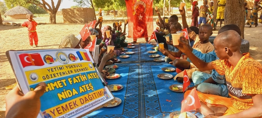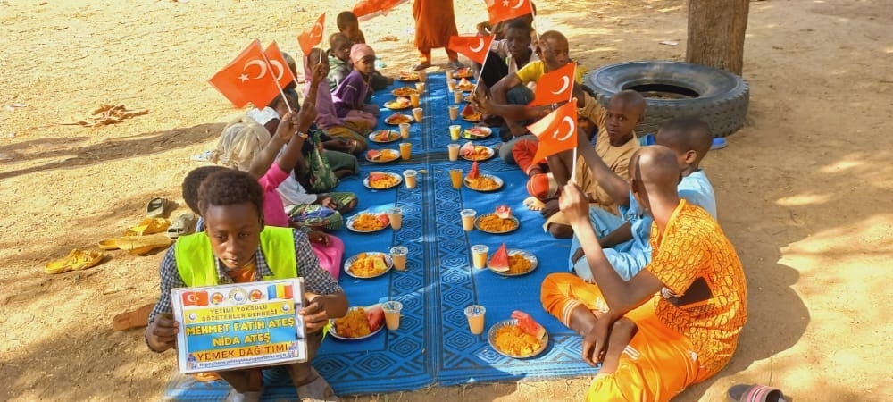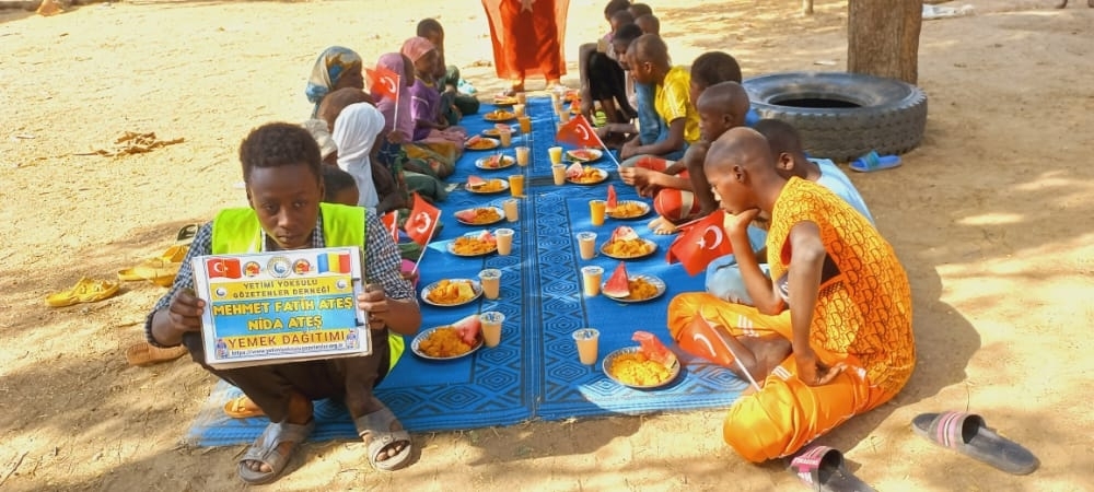 Afrika Çad ülkesinin fakir köylerinde çocuklarıa yemek dağıtımı yapıldı Aralık 2022