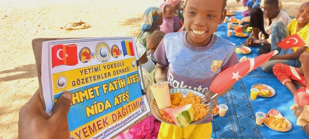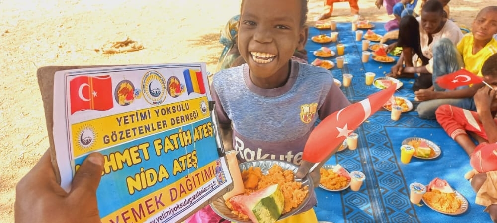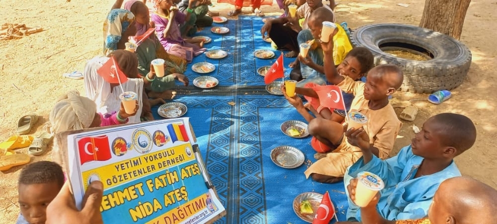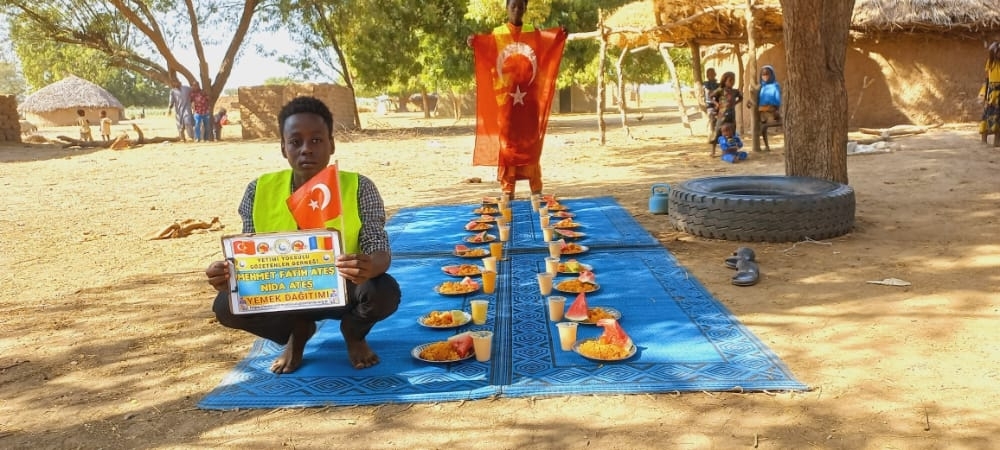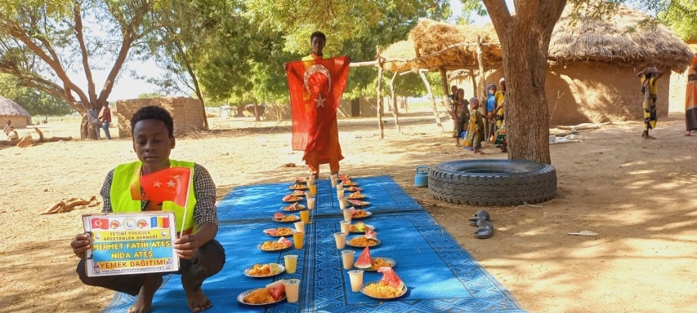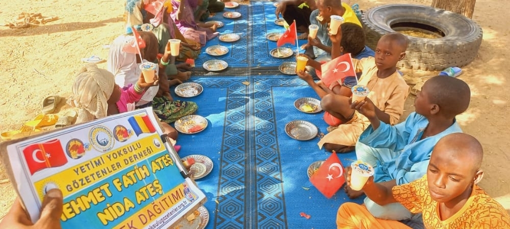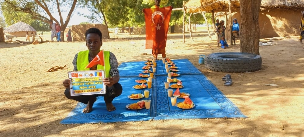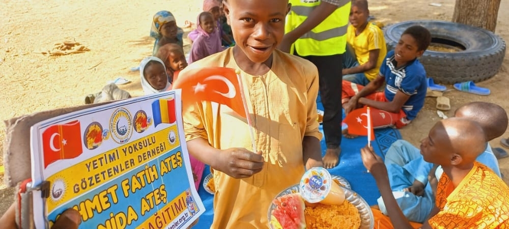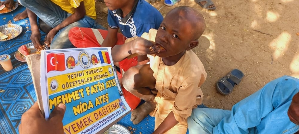 Afrika Çad ülkesinin fakir köylerinde çocuklarıa yemek dağıtımı yapıldı Aralık 2022