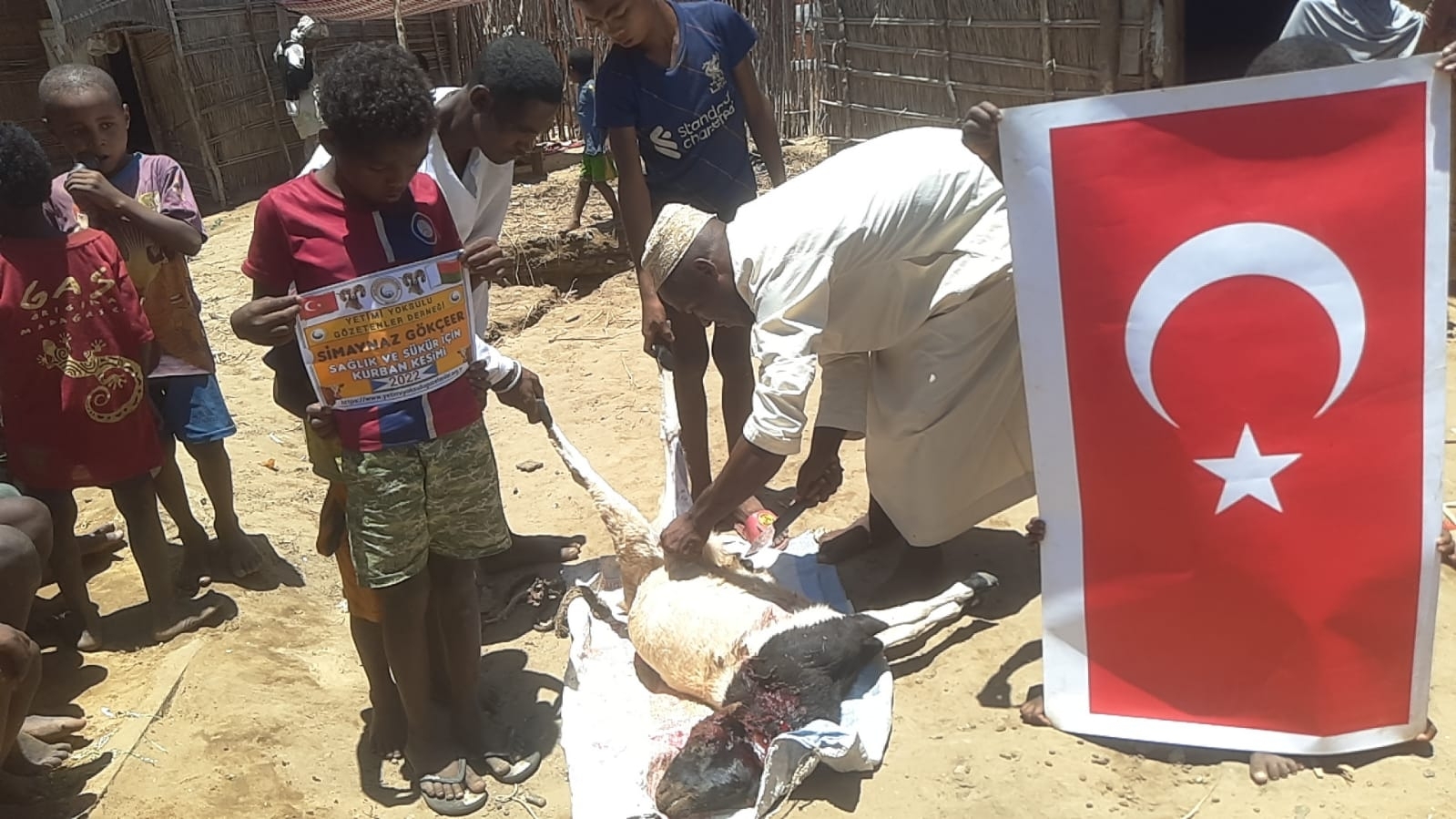 Afrika Madagaskar bölgesinde sağlık ve şükür için kurban kesimi yapılıp yoksul ailelere dagitildi