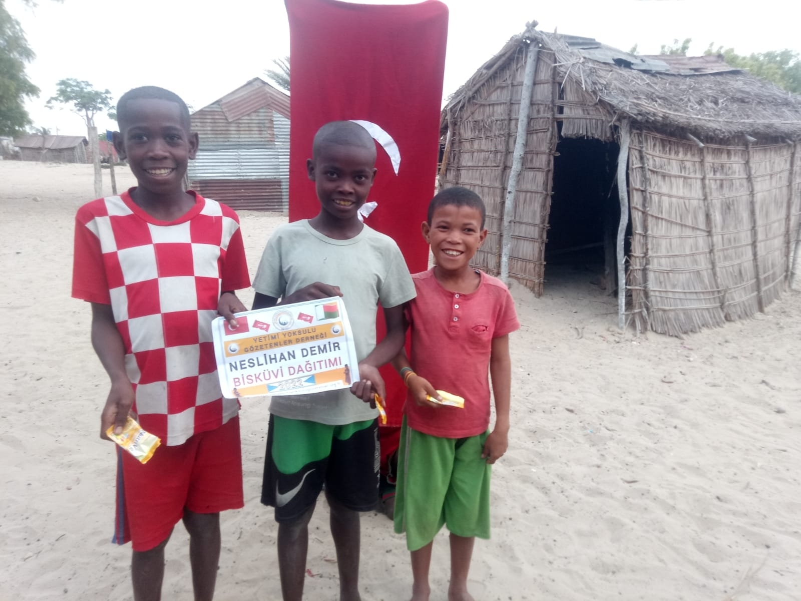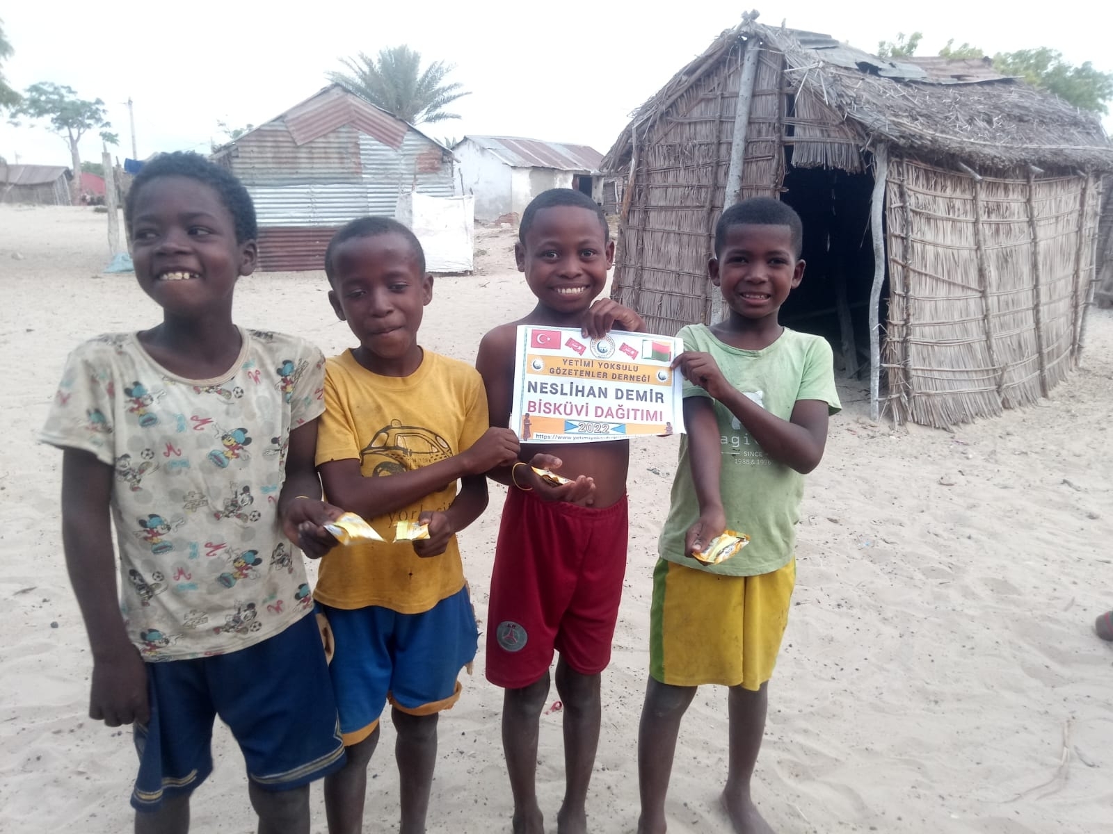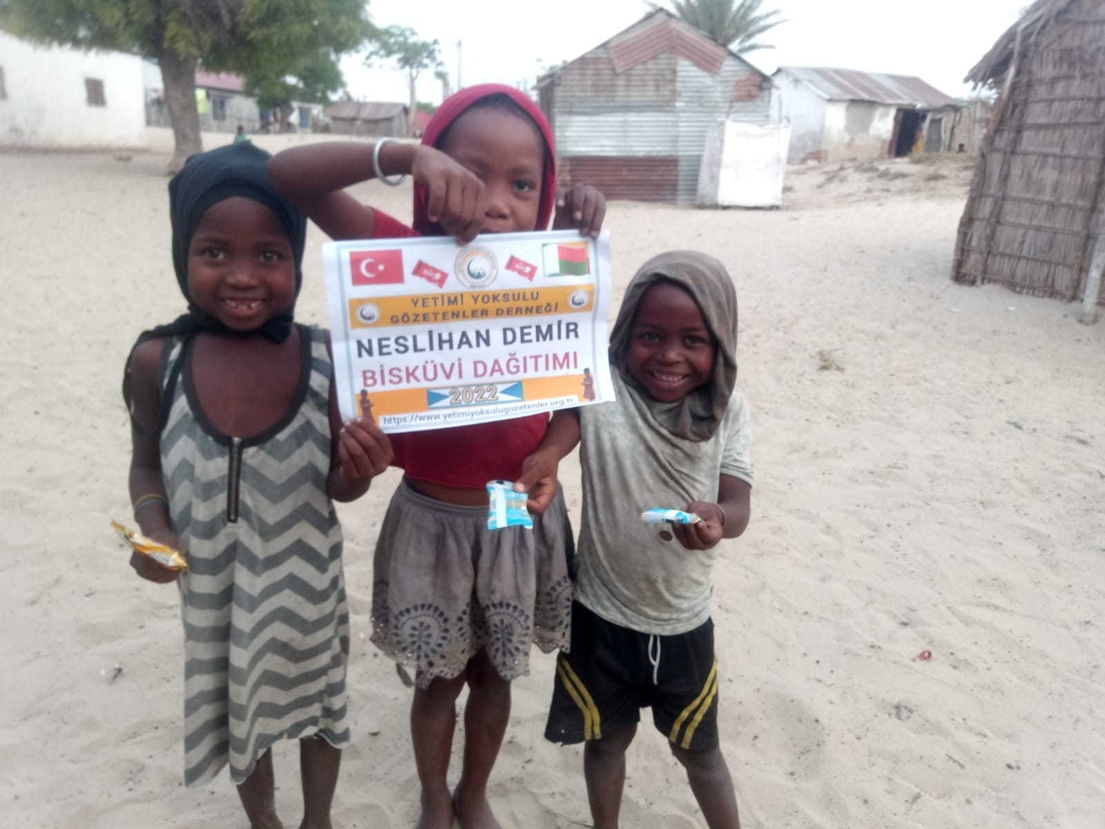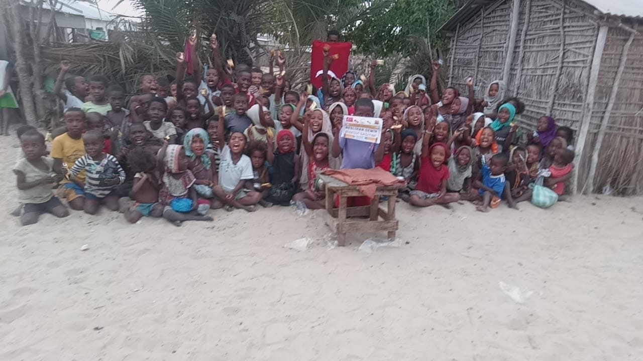 Afrika Madagaskar'da yetim ve yoksul çocuklara bisküvi dağıtarak sevinçlerine ortak olduk