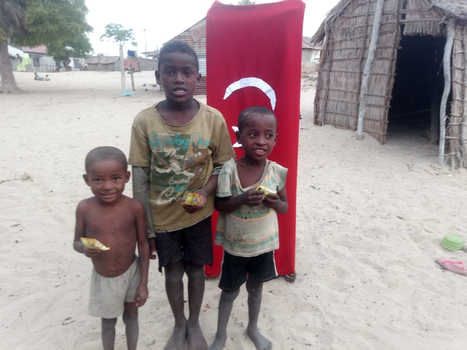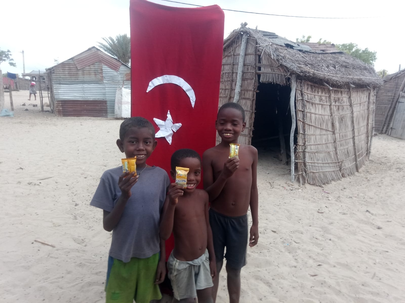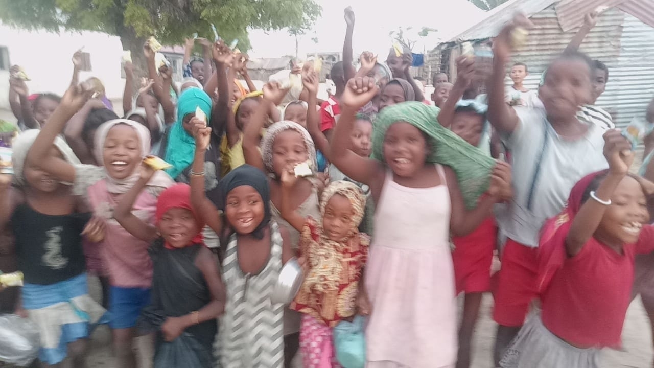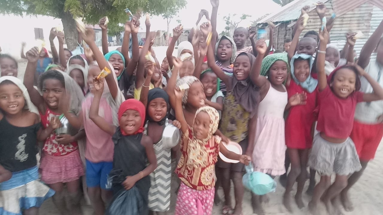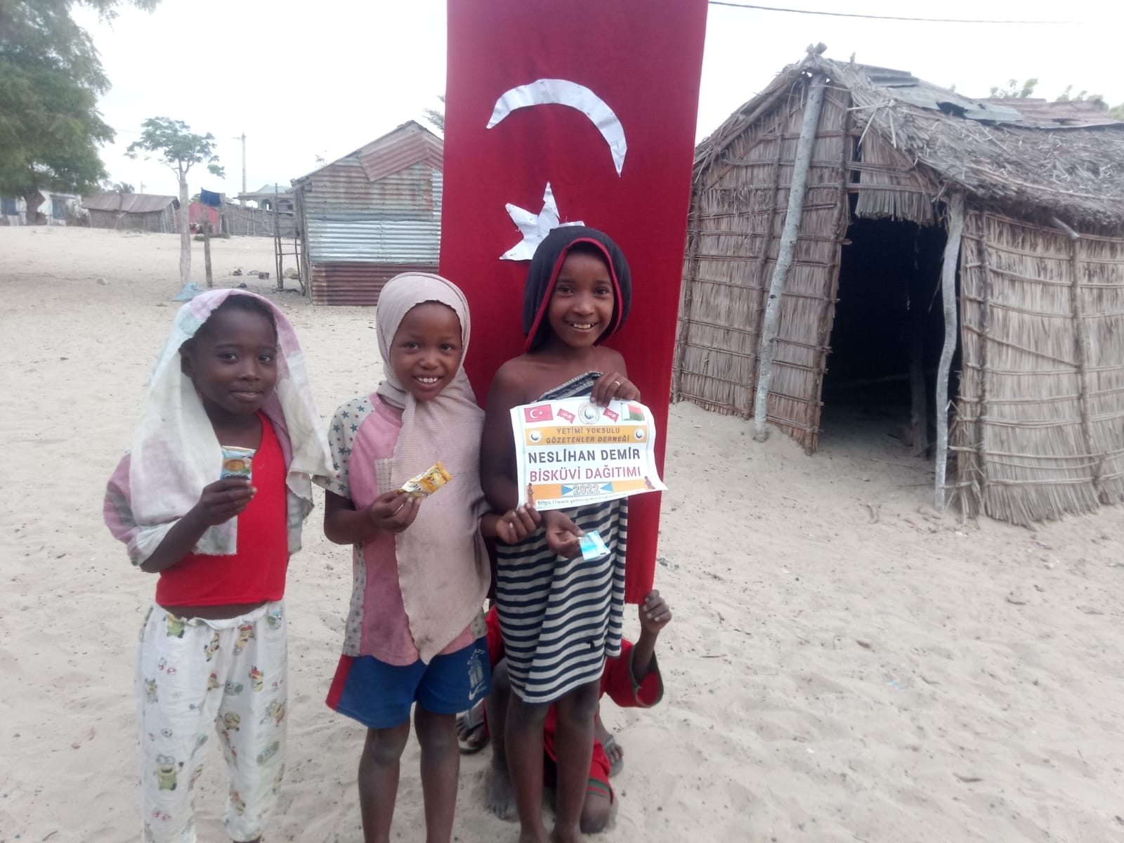 Afrika Madagaskar'da yetim ve yoksul çocuklara bisküvi dağıtarak sevinçlerine ortak olduk