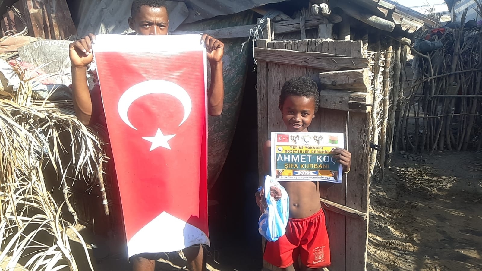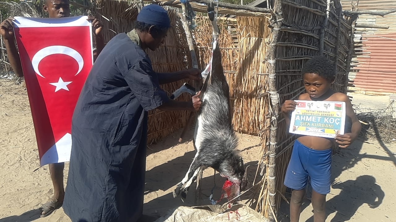Afrika Madagaskar köylerinde hayırseverimiz adına şifa kurbanı kesilip yetim ve yoksul ailelere dağıtıldı Ekim 2022