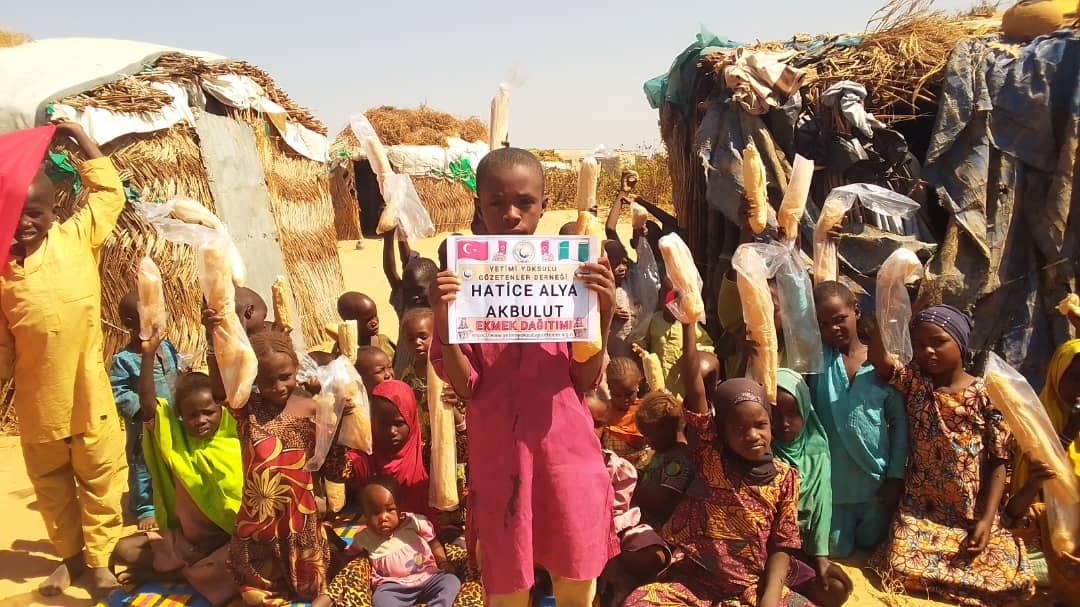 Afrika Nijeryada terör örgütlerinden kaçan çadırlarda yaşayan mültecilere ekmek dağıtımı da bulunduk