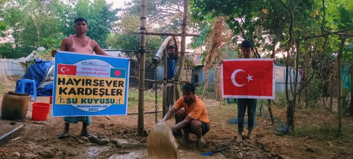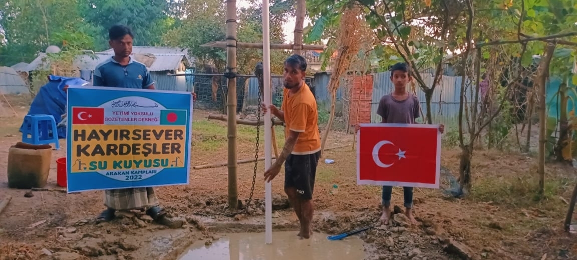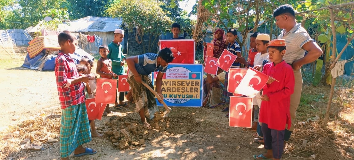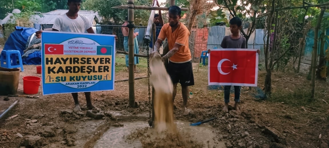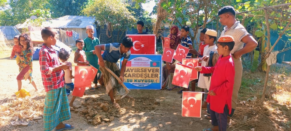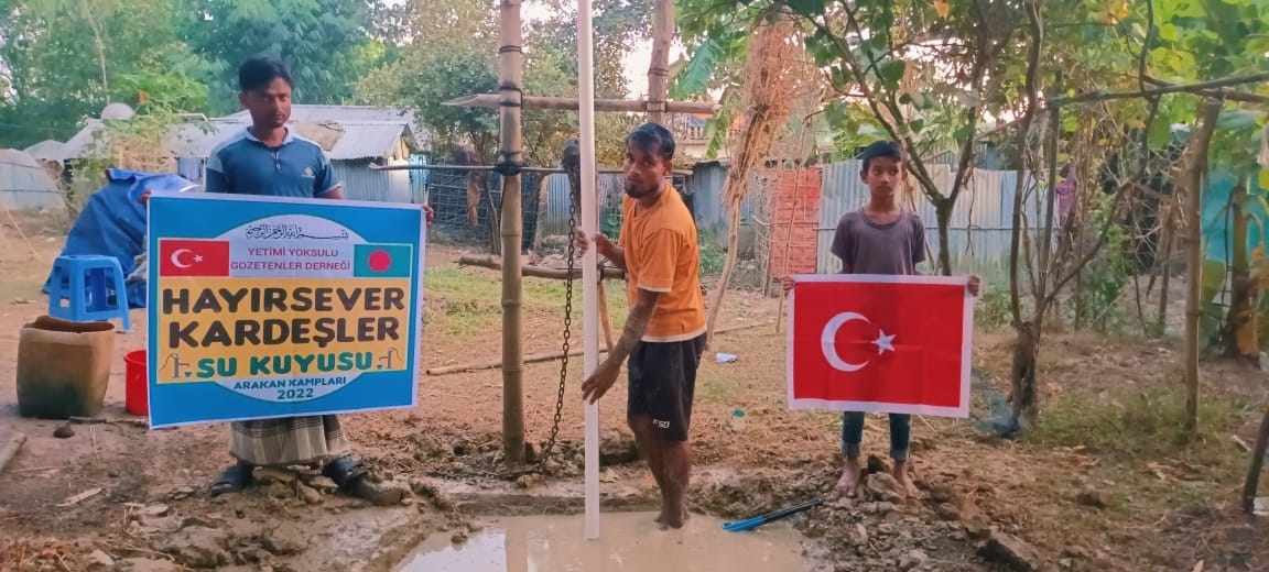 Bangladeş'in yoksul köyünde hayırsever kardeşler su kuyusu temel atma ve sondaj işlemleri yapıldıı