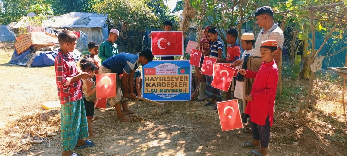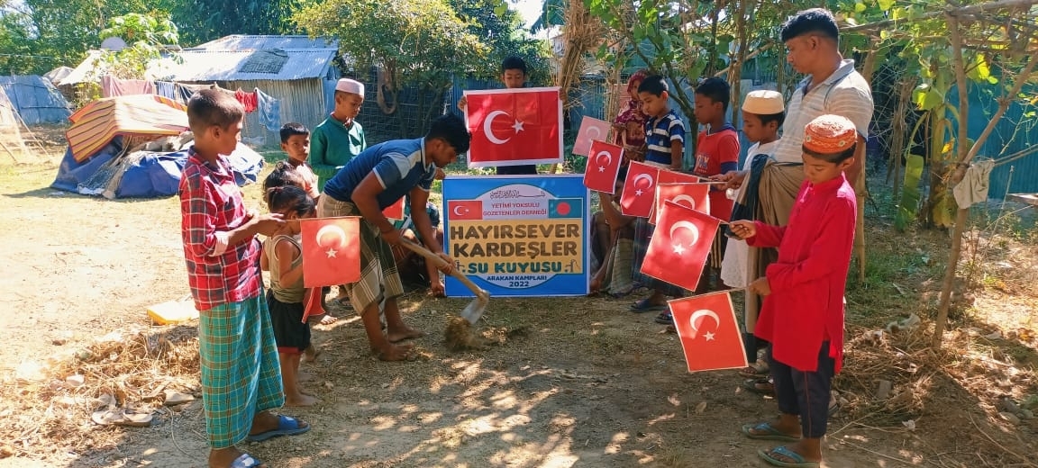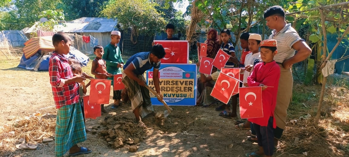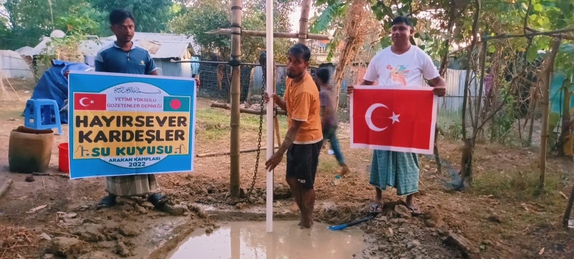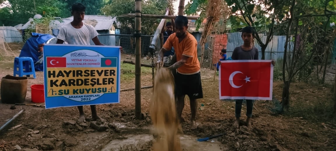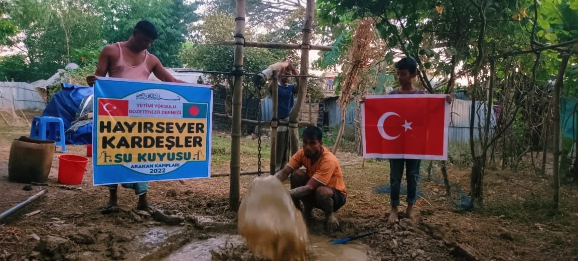 Bangladeş'in yoksul köyünde hayırsever kardeşler su kuyusu temel atma ve sondaj işlemleri yapıldıı