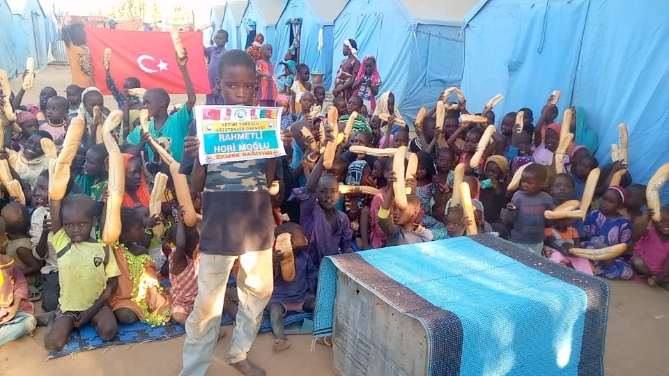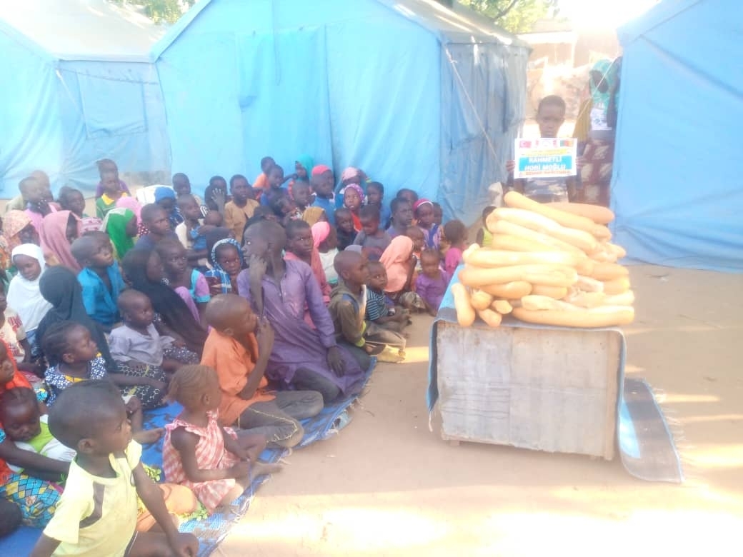 Bugün Afrika kamerunda şiddetli yağışlar ve seller sonucunda evsiz kalan çadırlarda yaşayan yetim yoksul ailelere ekmek dağıtımında bulunduk Kasım 2022