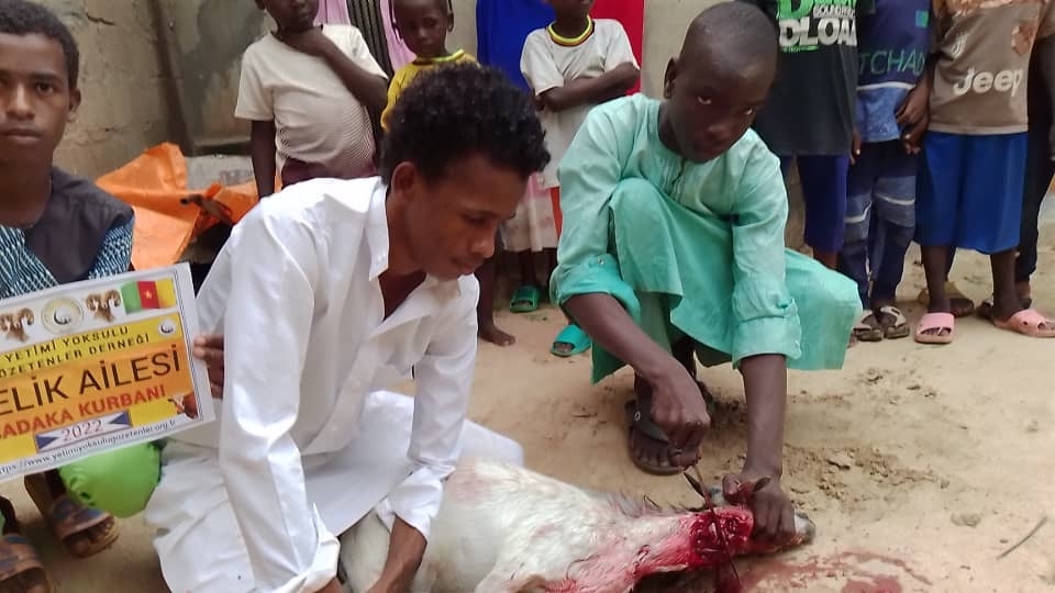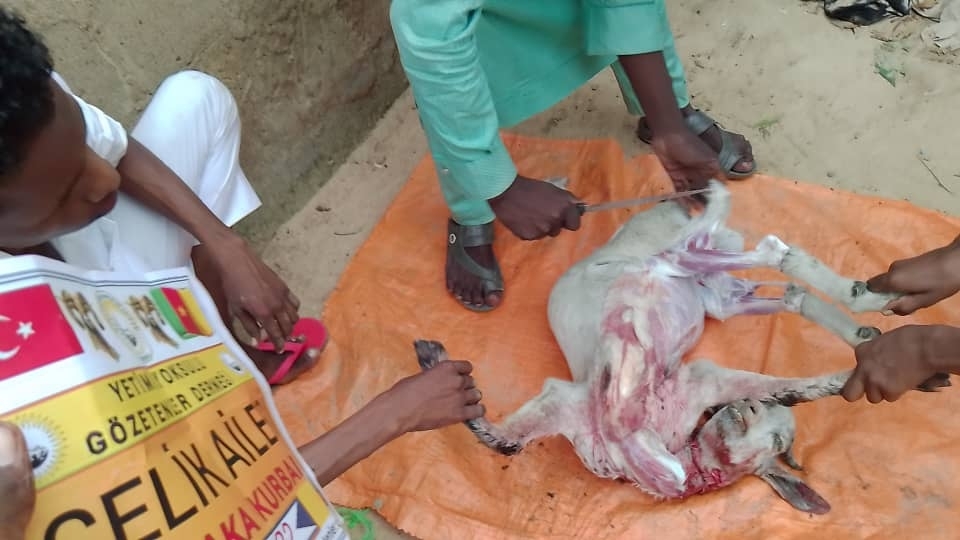 Kurban kesimlerimiz devam ediyor Bugün Afrika Kamerunda yetim ve yoksul ailelere dağıtıldı 2022 Eylül