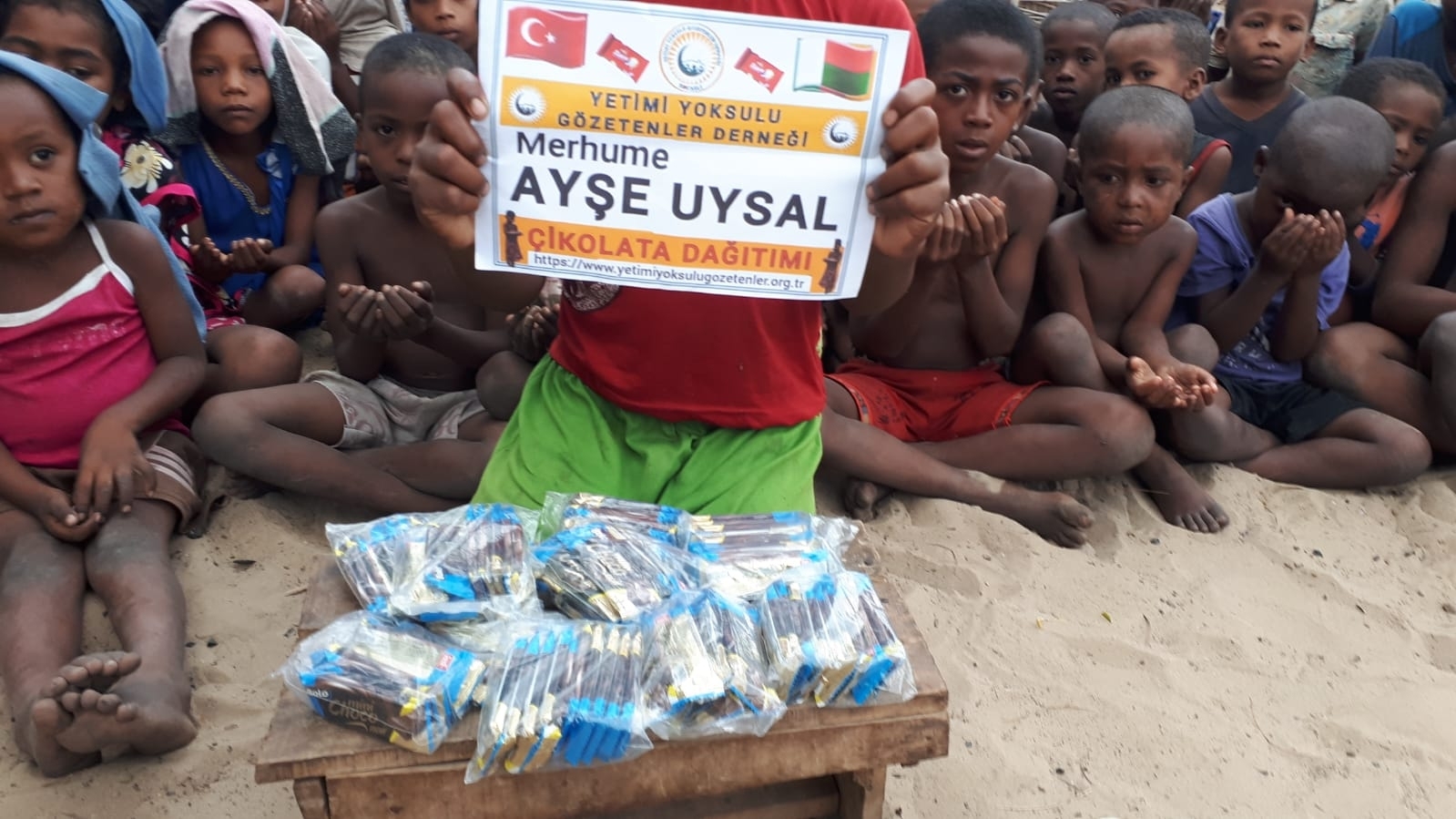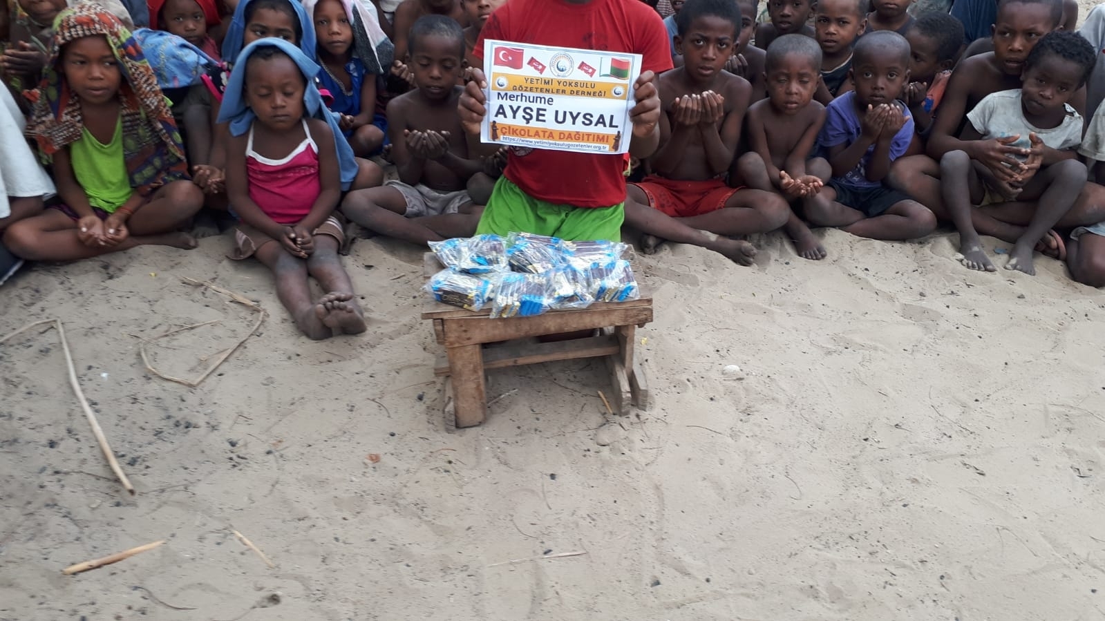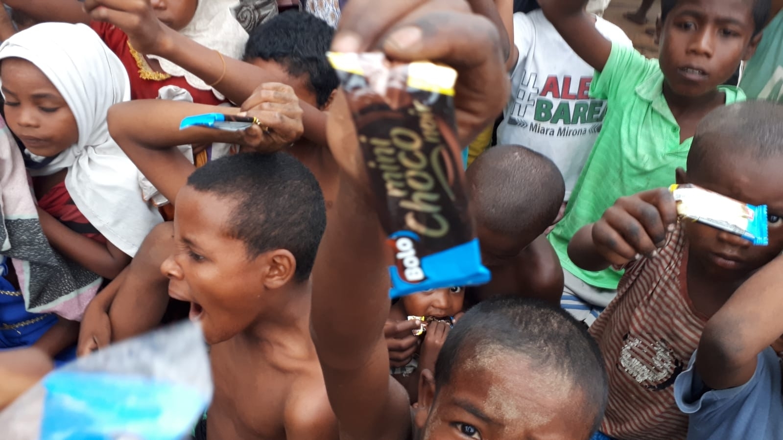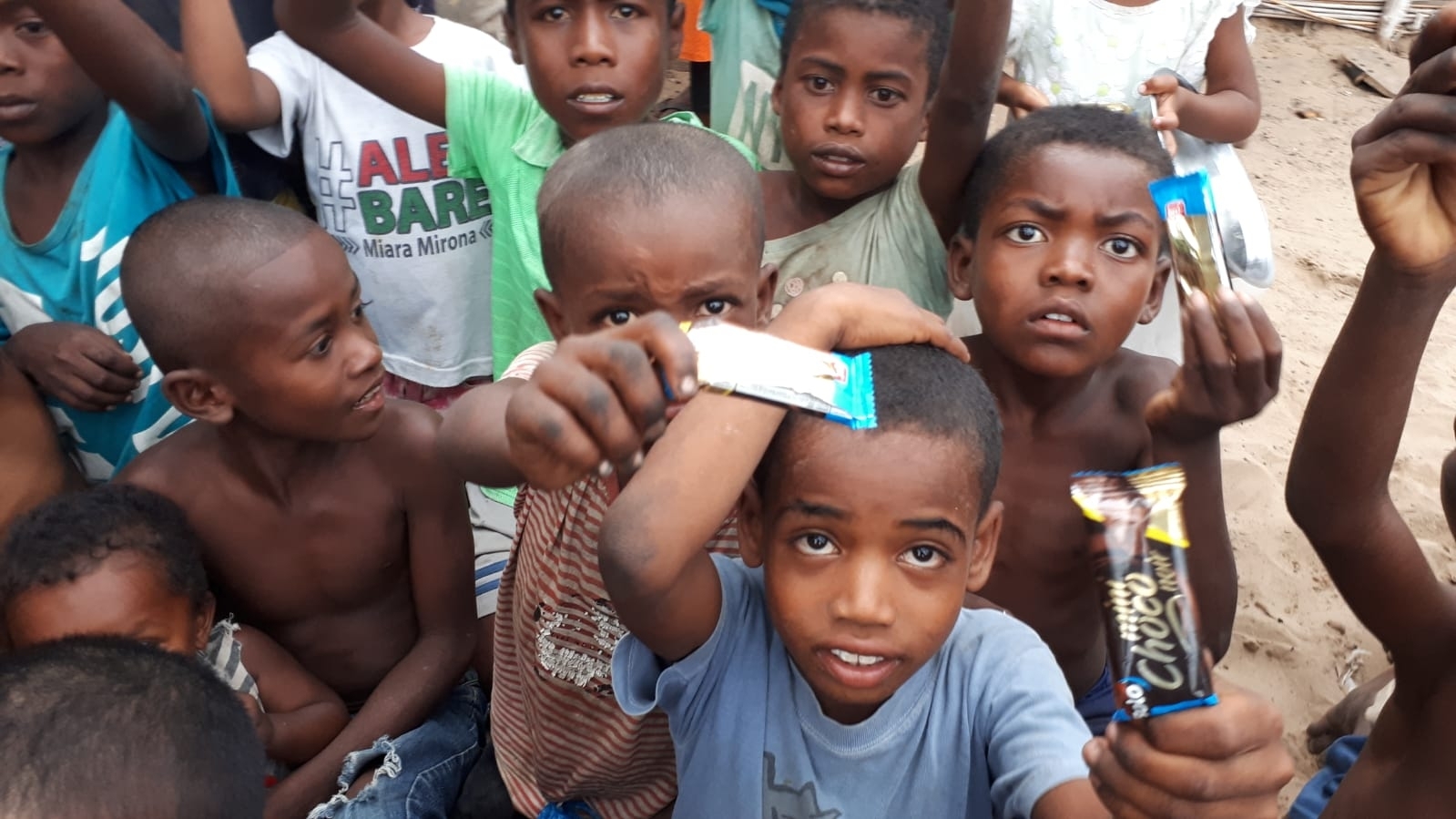 Madagaskar köylerinde çocukları sevindirme çikolata dağıtımı