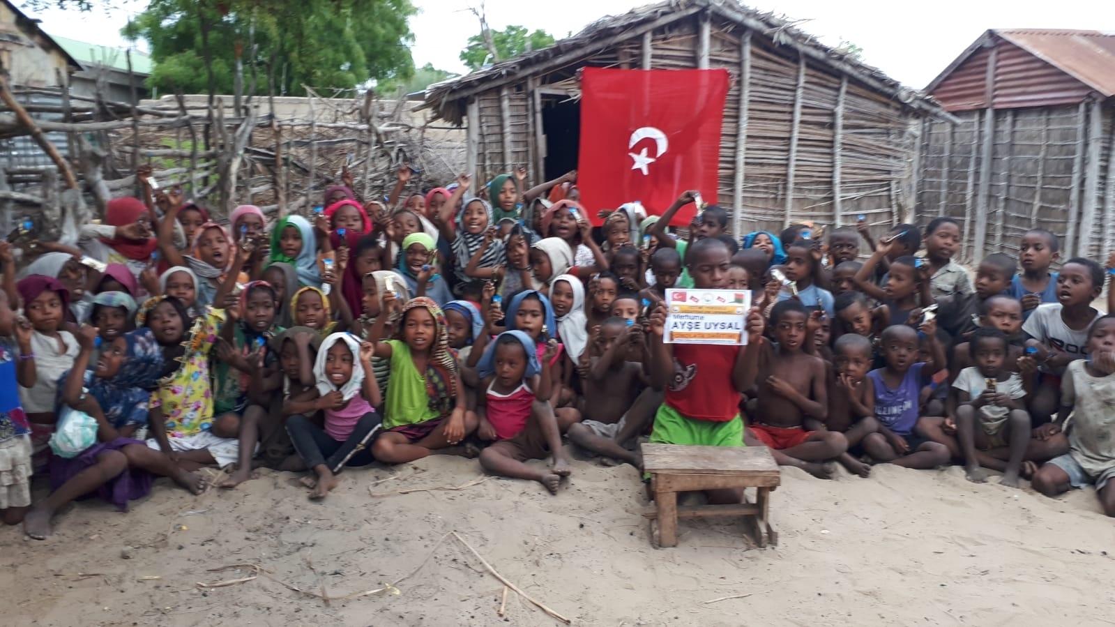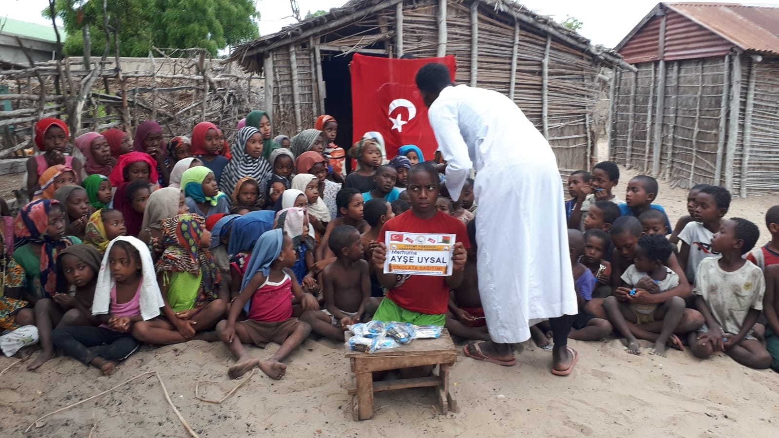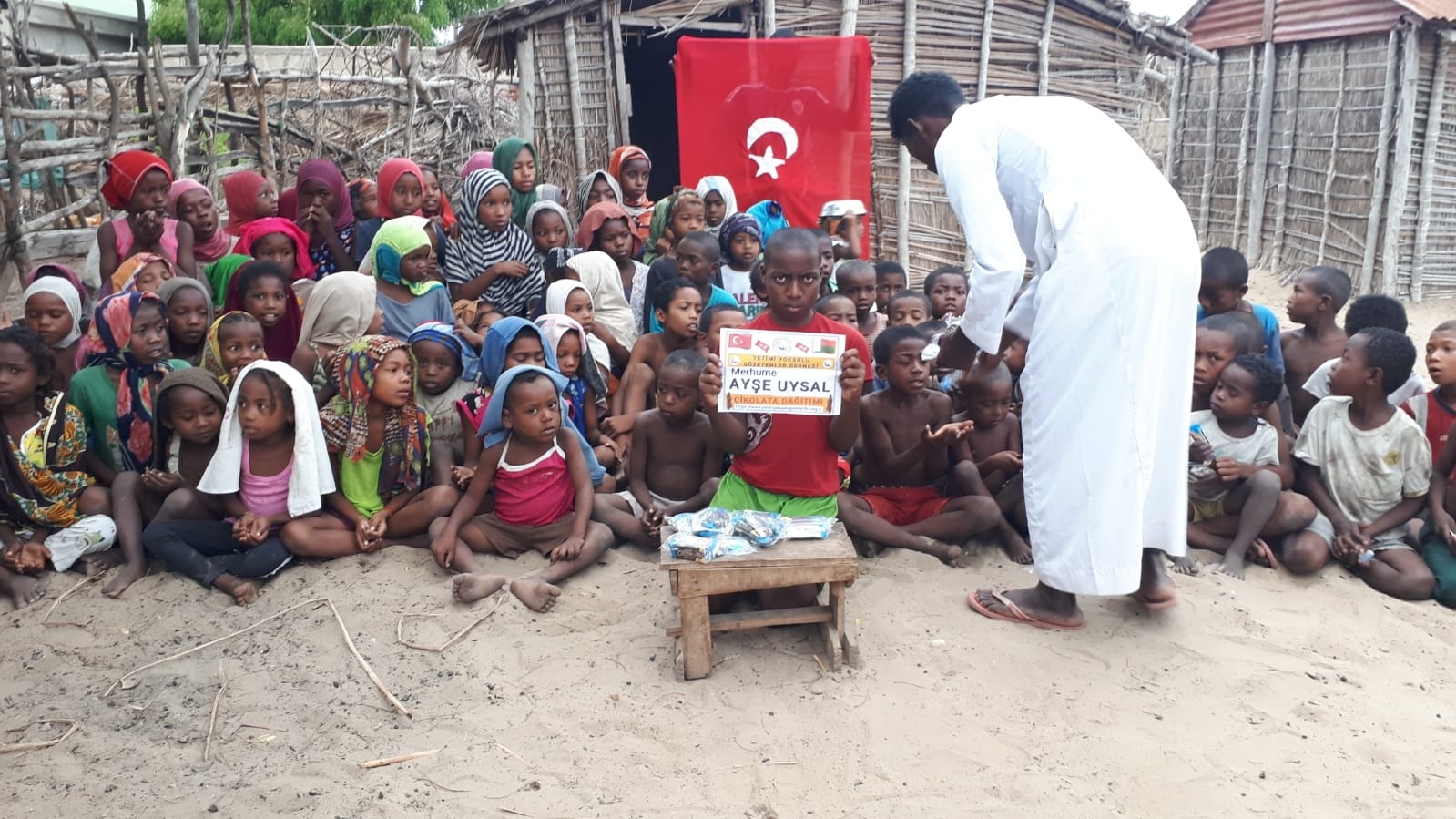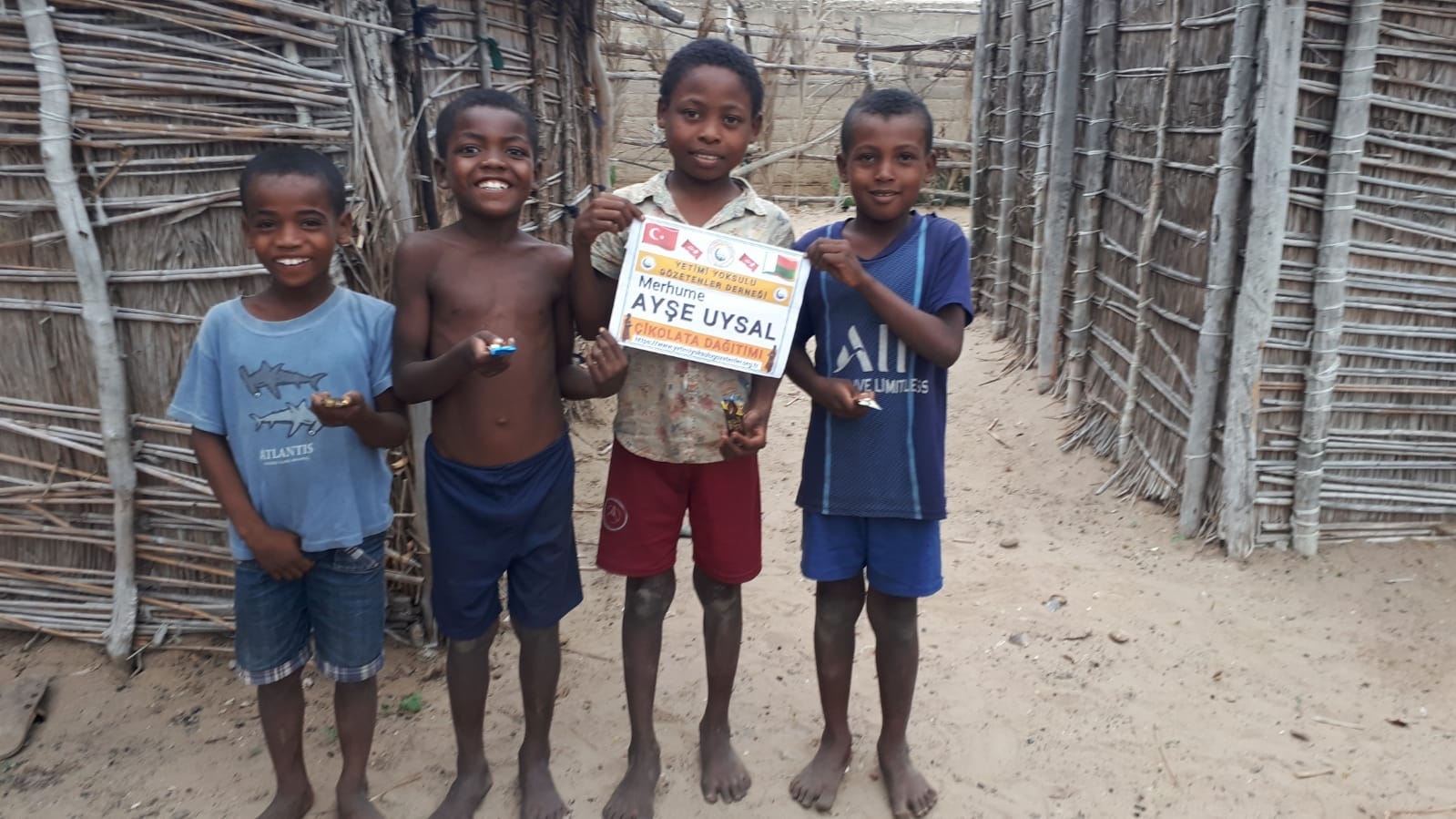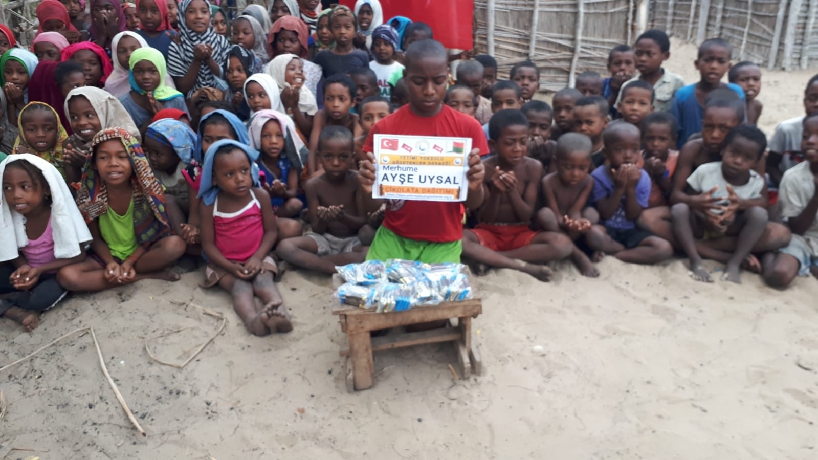 Madagaskar köylerinde çocukları sevindirme çikolata dağıtımı
