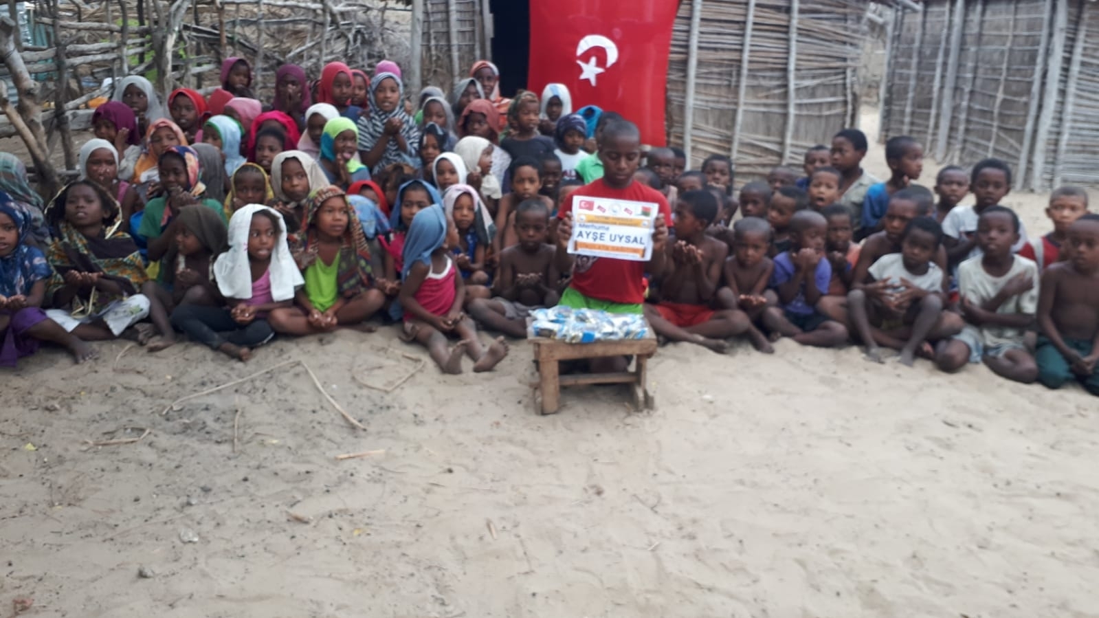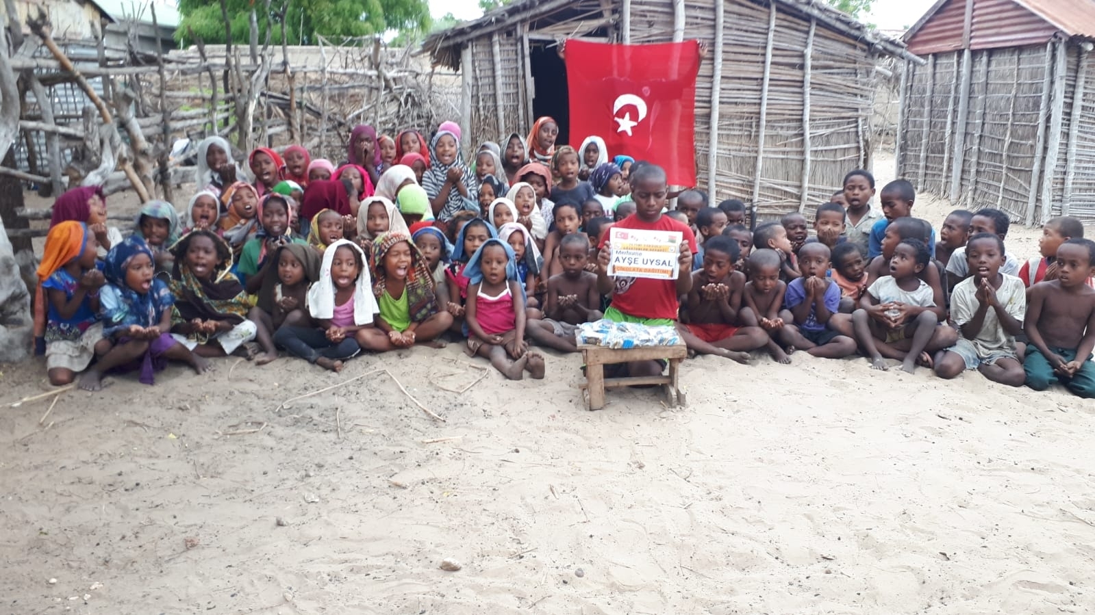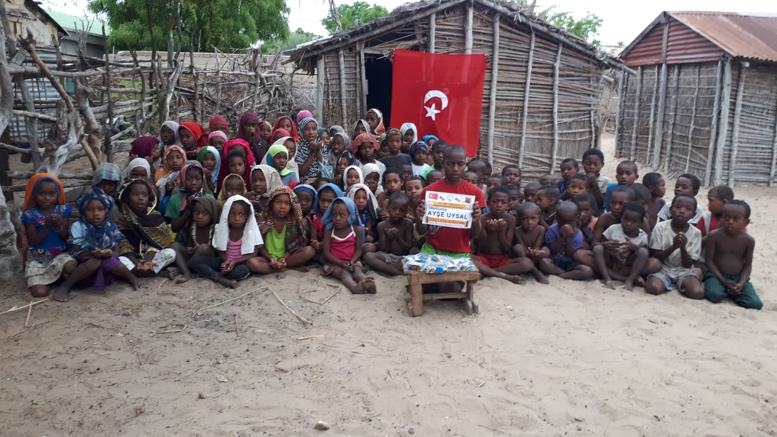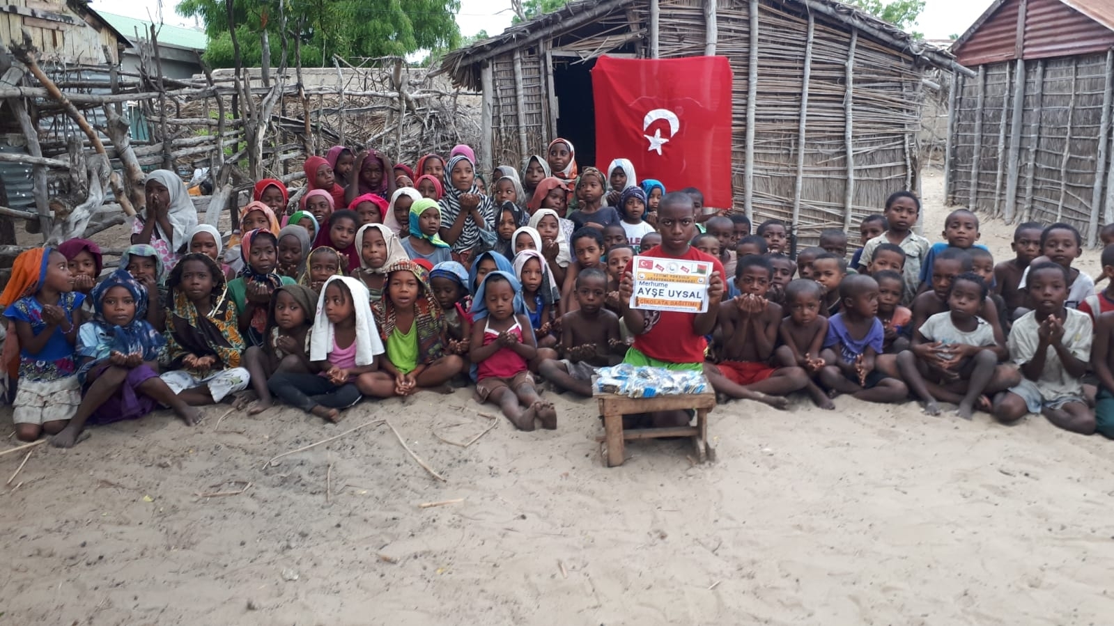 Madagaskar köylerinde çocukları sevindirme çikolata dağıtımı