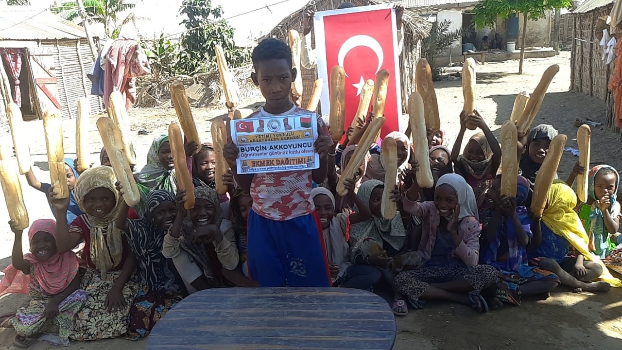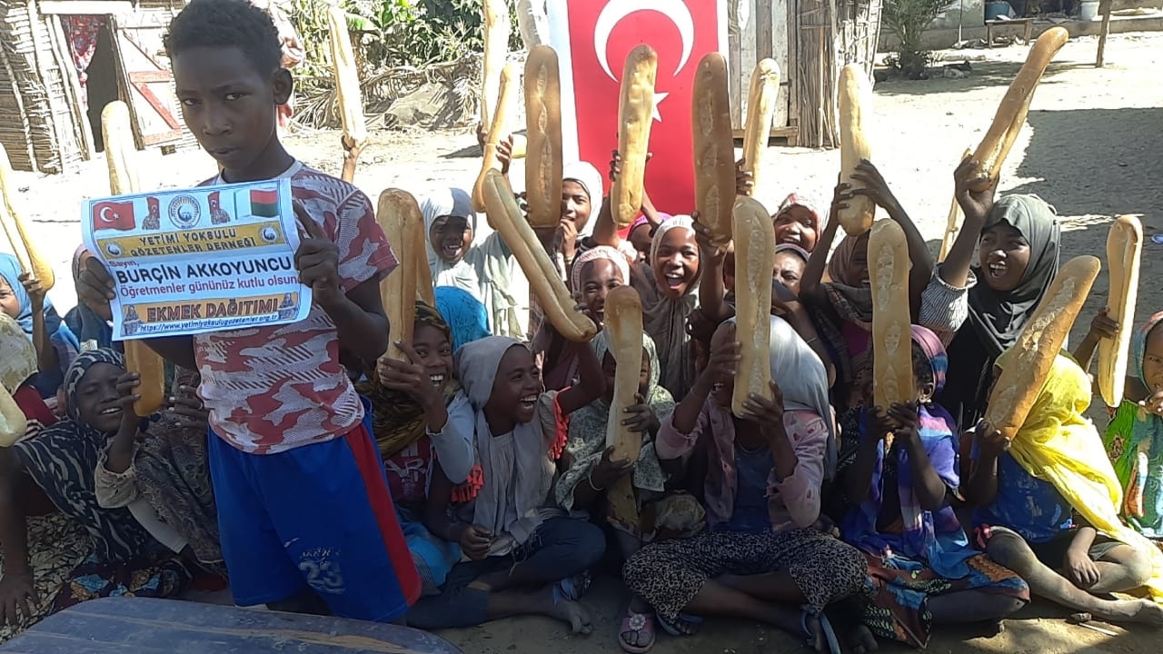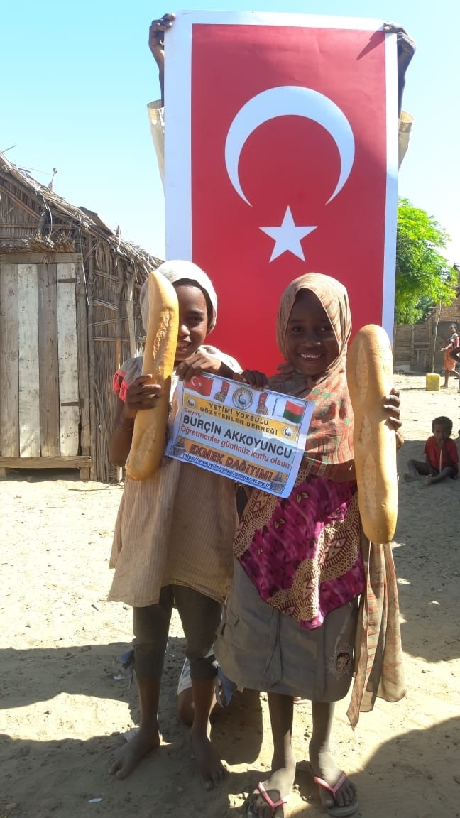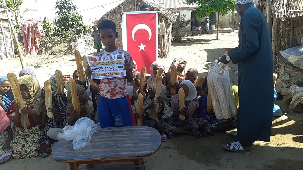 Öğretmenler günü hediyesi Afrika Madagaskar ülkesinde yetim ve yoksul çocuklara ekmek dağıtımında bulunduk
