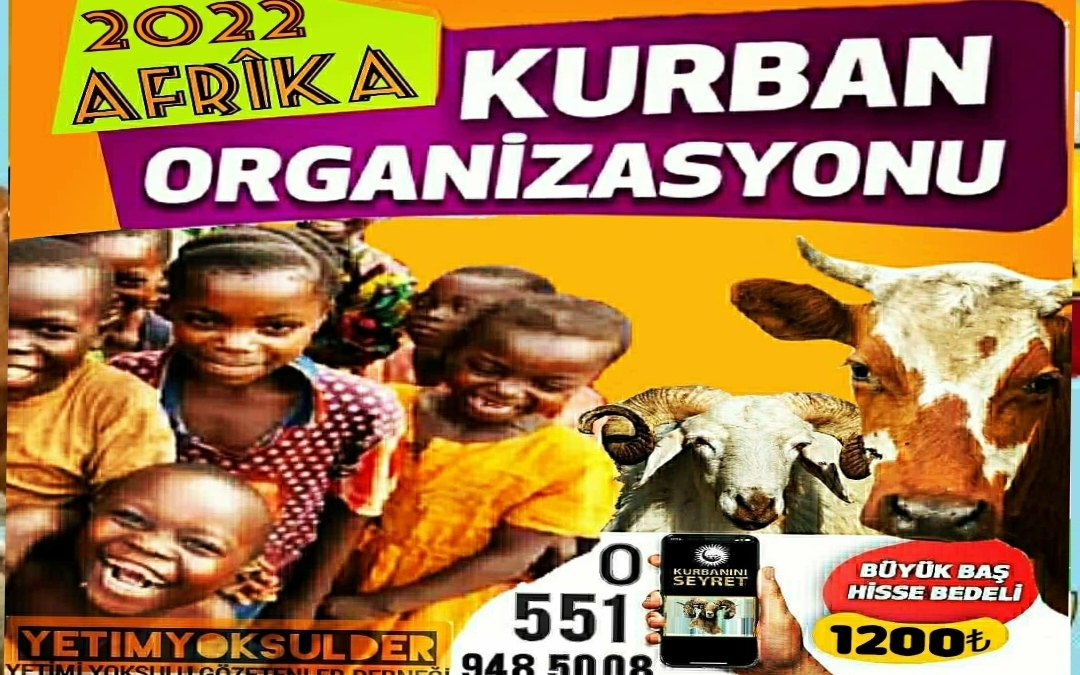 Yetimi Yoksulu Gözetenler Derneği Afrika bölgesinde kurban bağışlarını ulaştırmaya devam ediyor. Mağdur, mazlum coğrafyalarda ihtiyaç sahiplerine ulaşan Yetimi Yoksulu Gözetenler Derneği 2022 kurban bağış organizasyonu için hazırlıklarını tamamladı. Başta ülkemiz olmak üzere İslâmî usûllere uygun ve veteriner kontrolünde Afrika ülkelerinde ( Çad, Mali, Nijer, Togo, Nijerya, Benin) kurban kesimlerini gerçekleştiren dernek, bağışçılarına kurbanlık kesiminden dağıtımına kadar olan bütün süreci videolar halinde paylaşıyor. Yapılan bağışlarla kesilen vacip kurbanlar 2022 yılında, yetimhane, okul, medrese, huzur evleri ve köylerdeki mazlum ihtiyaç sahiplerine ulaşıyor.